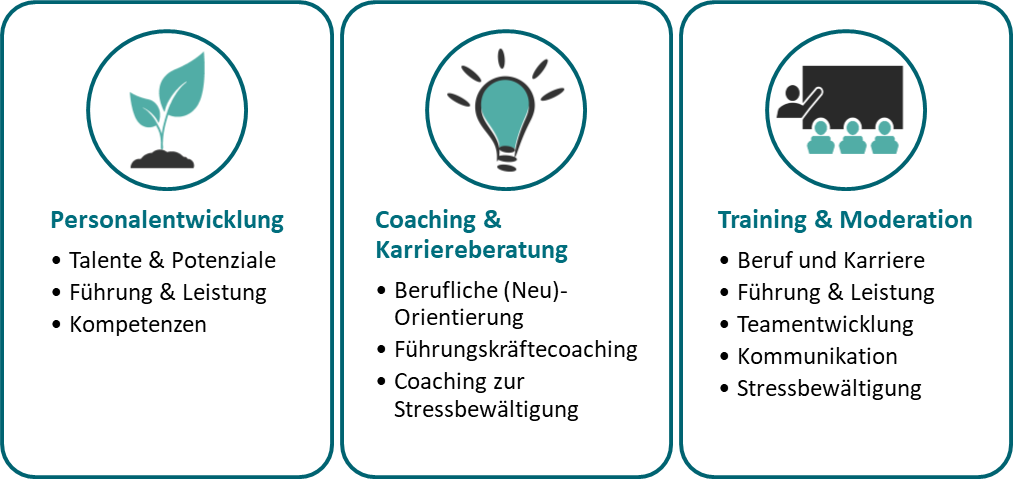 Mit systemischem Coaching in Kombination mit Seminaren und Workshops begleite ich meine Kunden beim Entdecken und Schärfen ihres Profils für die Herausforderungen rund um Beruf, Familie und Karriere.Mein Angebot im Überblick